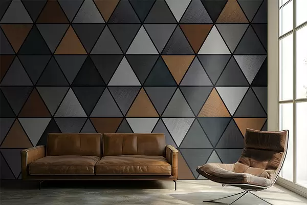 Тапете за зид Троугласти узорак са сивим и топлим нијансама бр. w05095v1