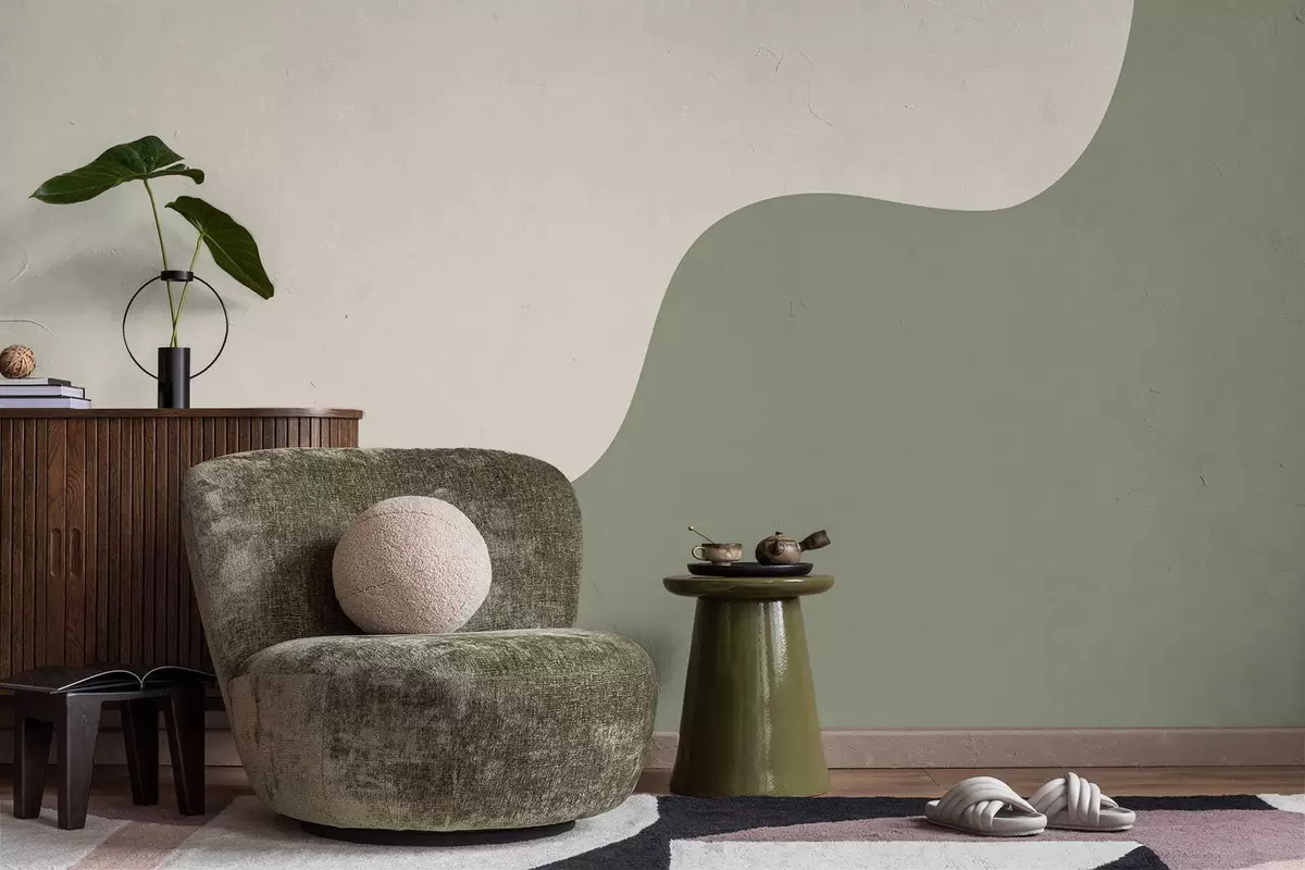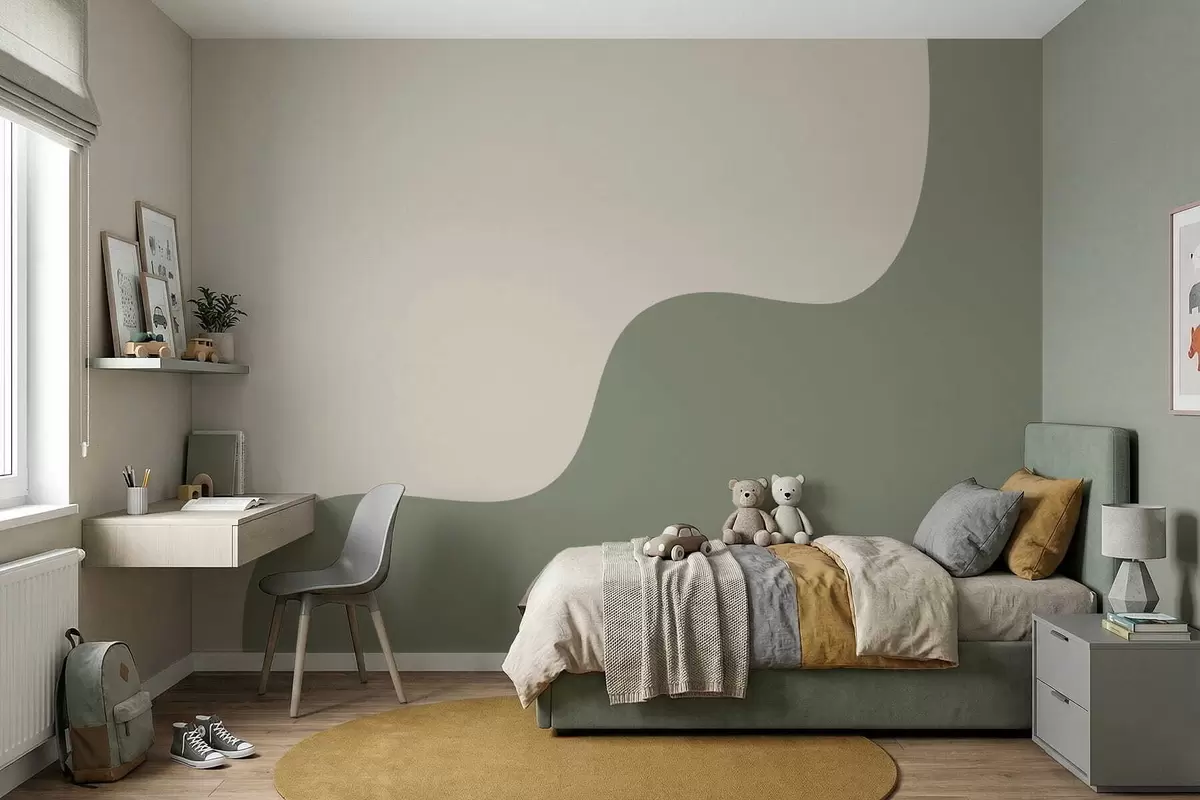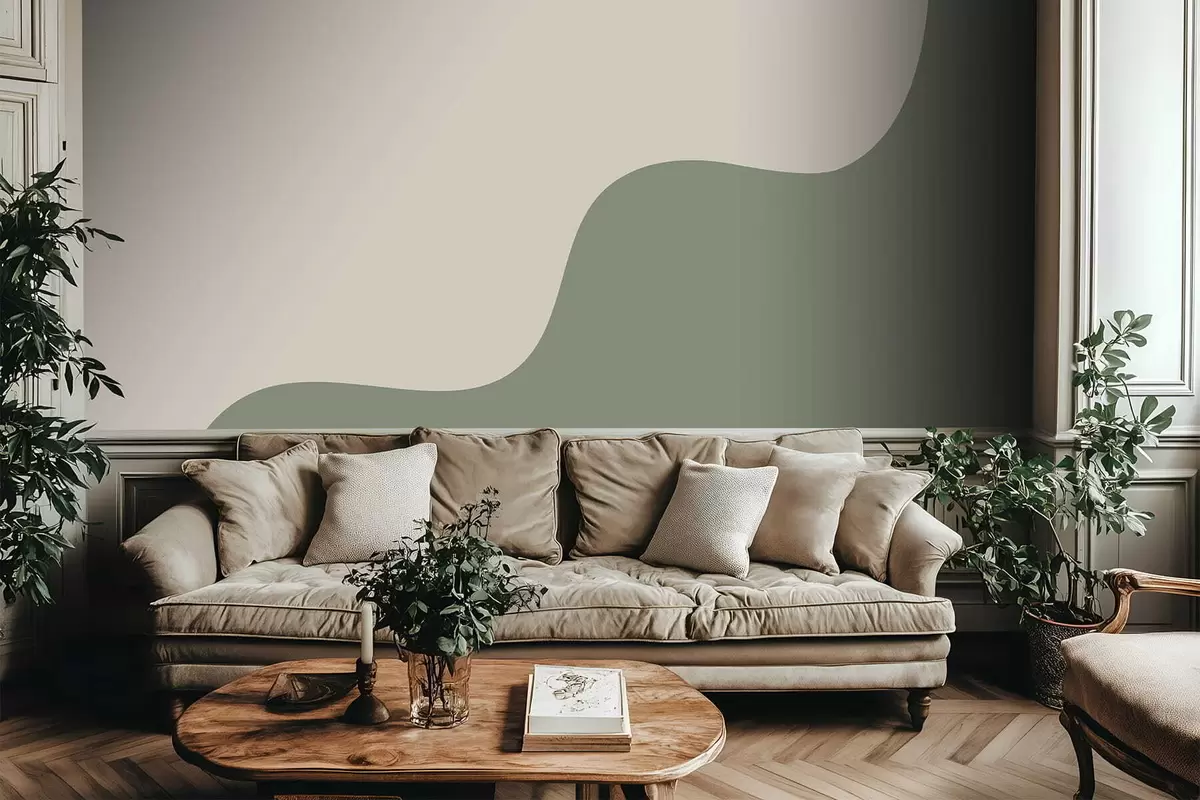 Тапете за зид Глатки апстрактни облици у светло беж и зеленим нијансама бр. w05097
