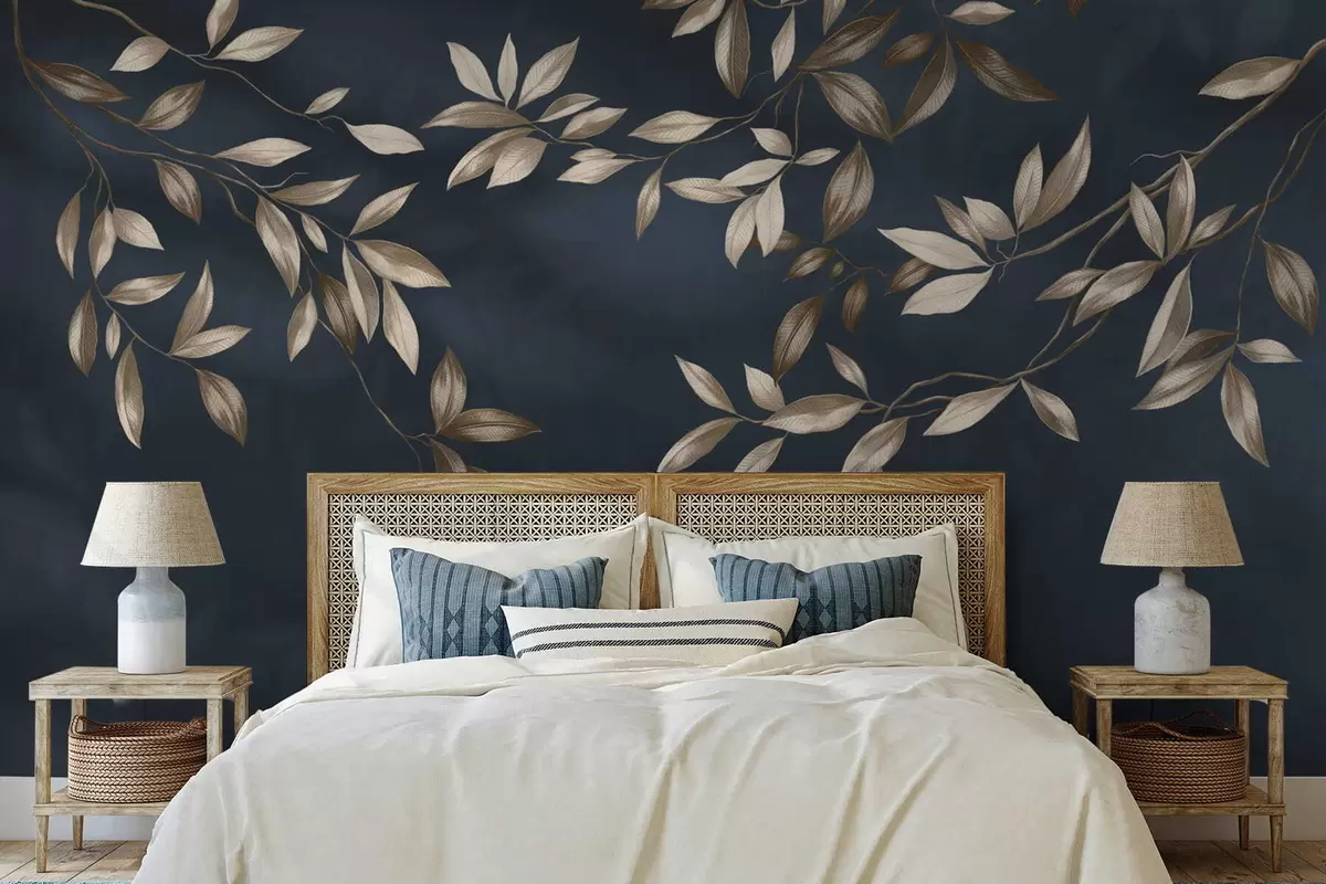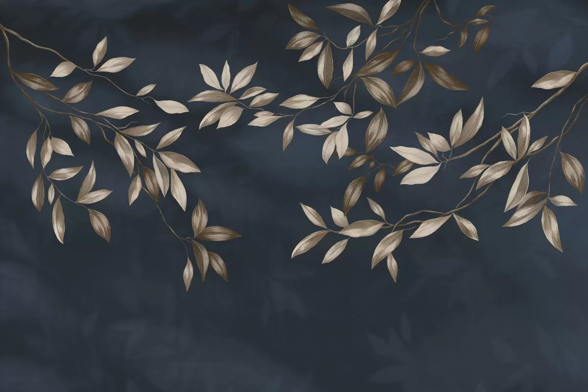 Тапете за зид Декоративне лиснате гране на тамноплавој позадини бр. w05113v1