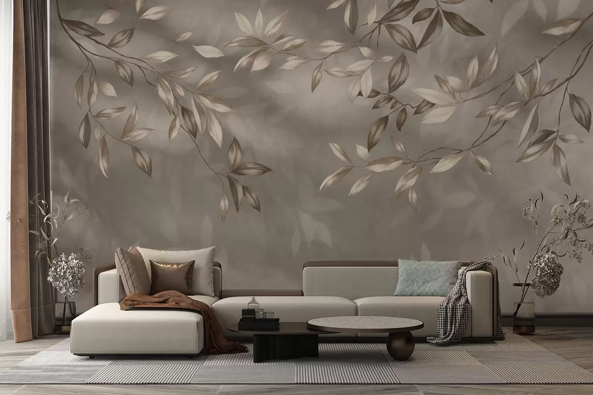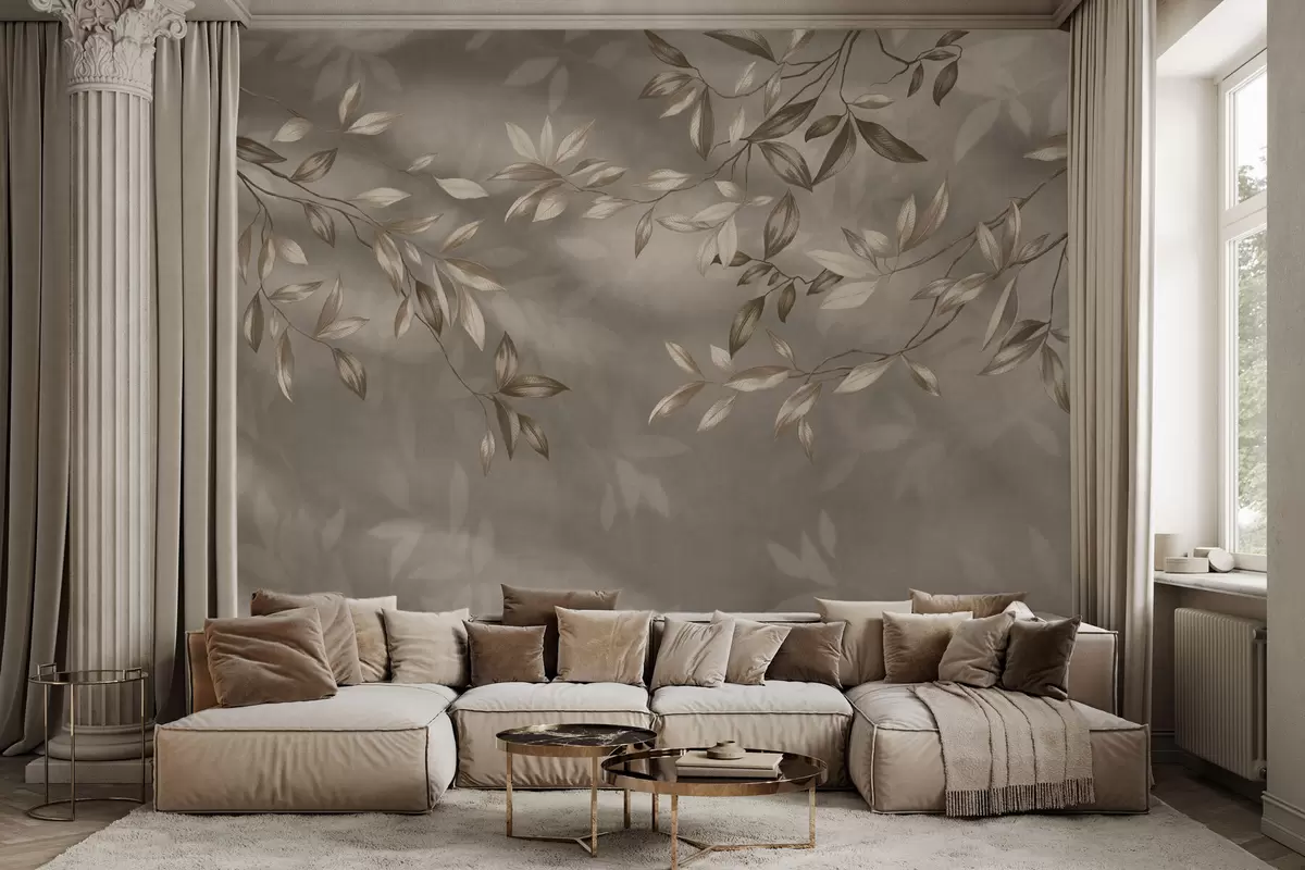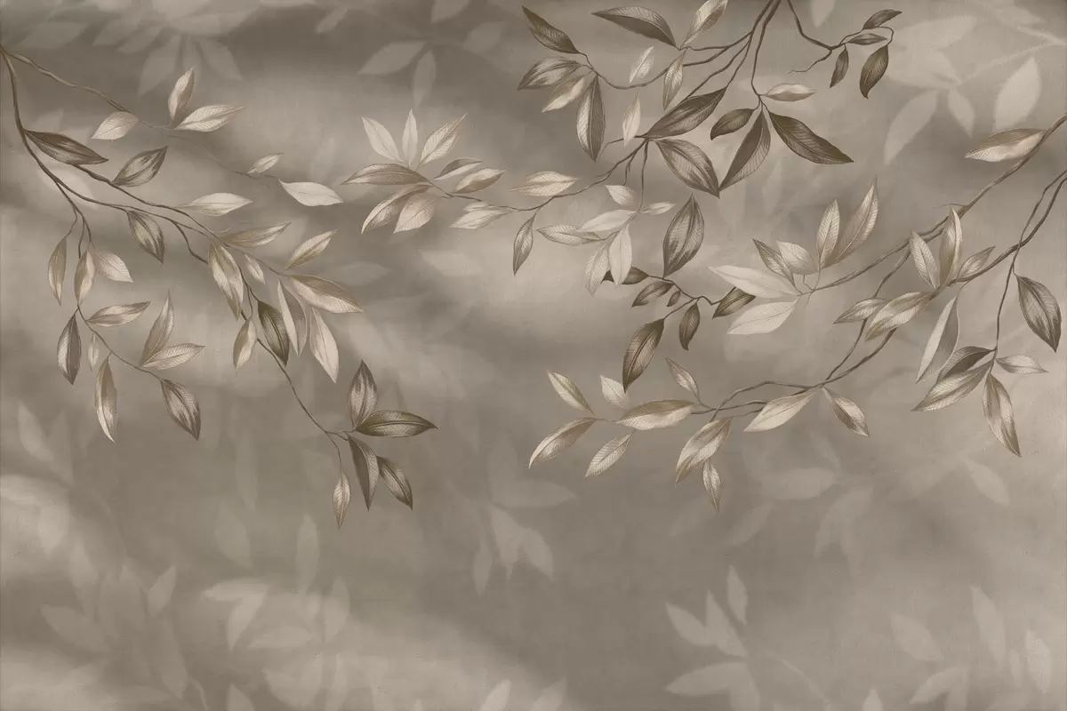 Тапете за зид Нежне лиснате гране у беж тоновима на светлој позадини бр. w05113v2