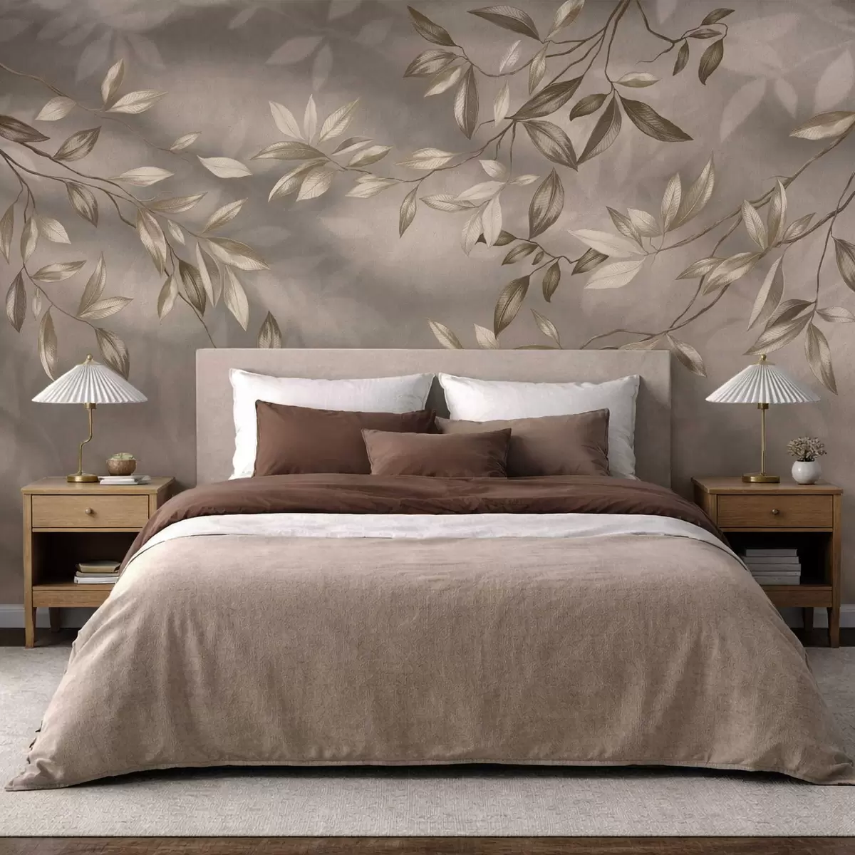 Тапете за зид Нежне лиснате гране у беж тоновима на светлој позадини бр. w05113v2