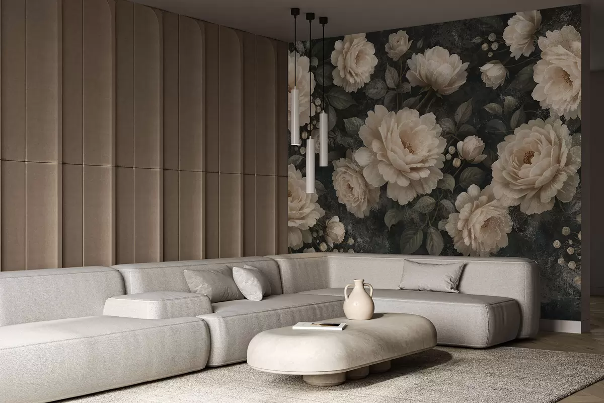 Тапете за зид Волуменозно цвеће у беж палети на тамној позадини бр. w05114