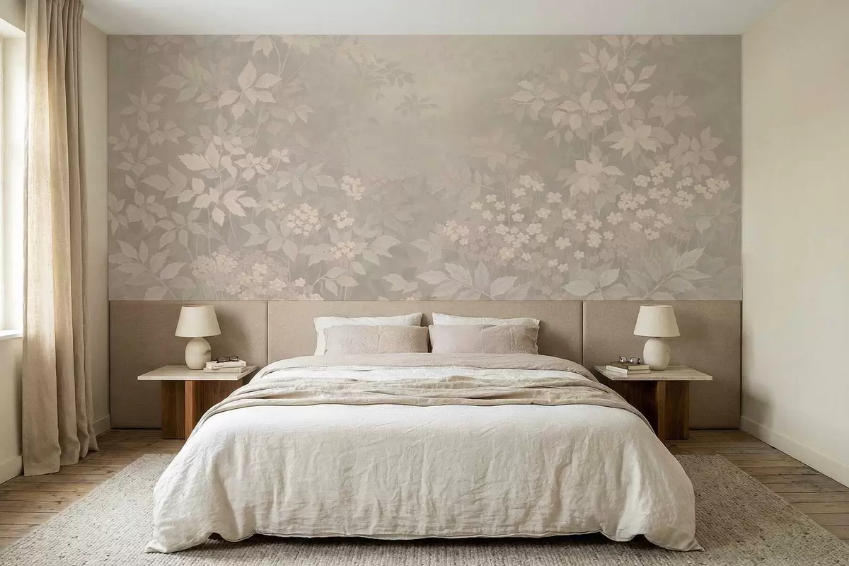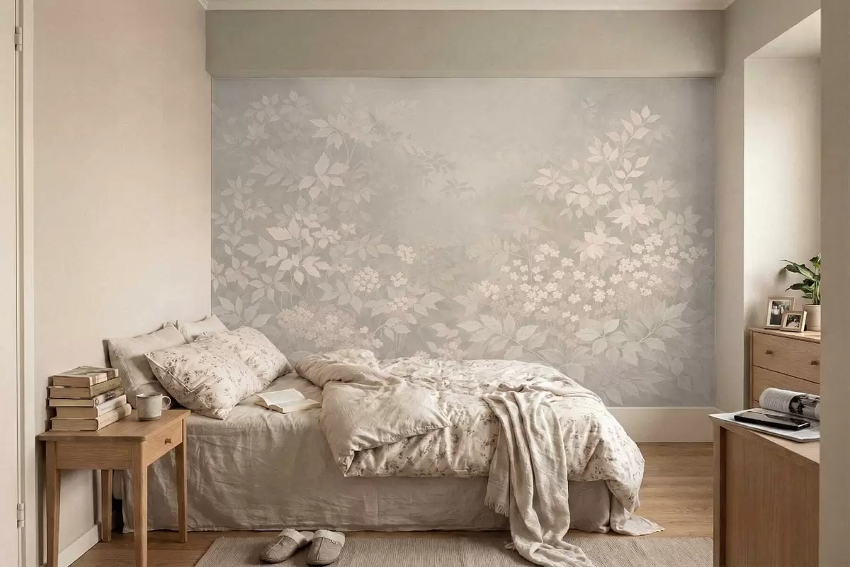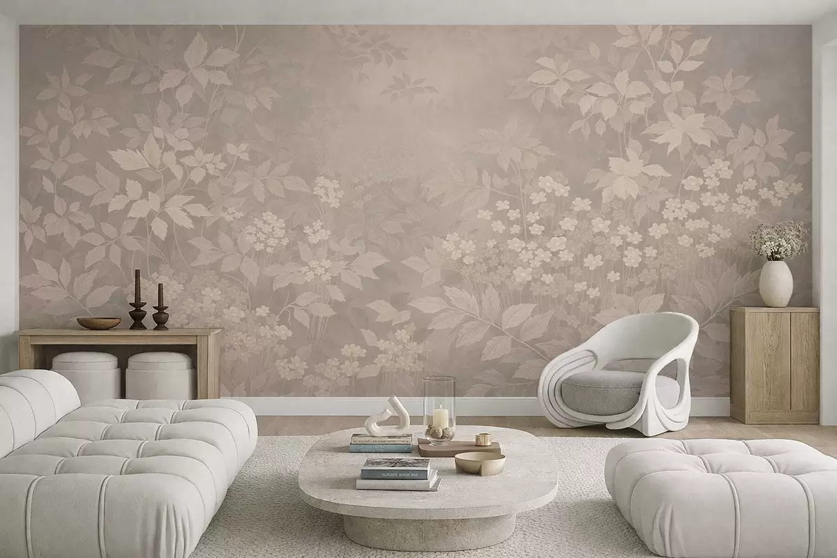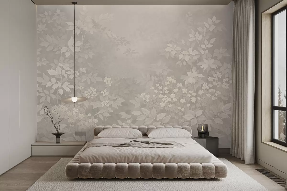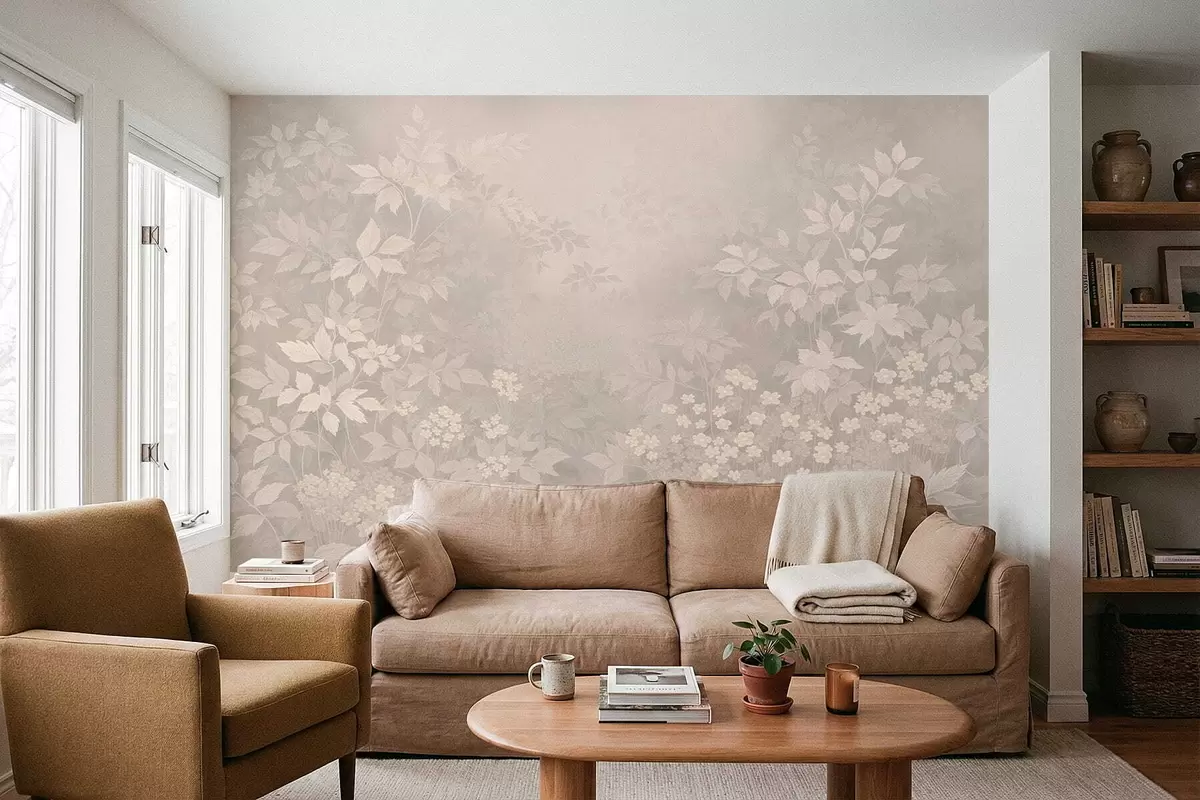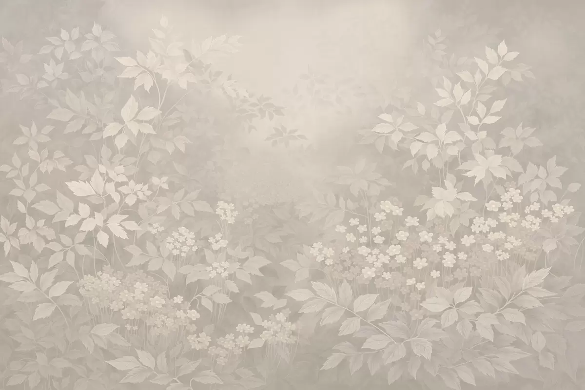 Тапете за зид Меки ботанички узорак са лишћем и цвећем у магли бр. w05115v1