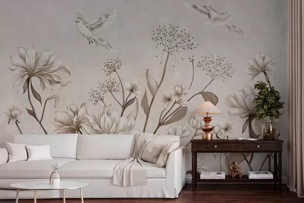 Тапете за зид Светло цвеће и птице на мекој позадини бр. w05118