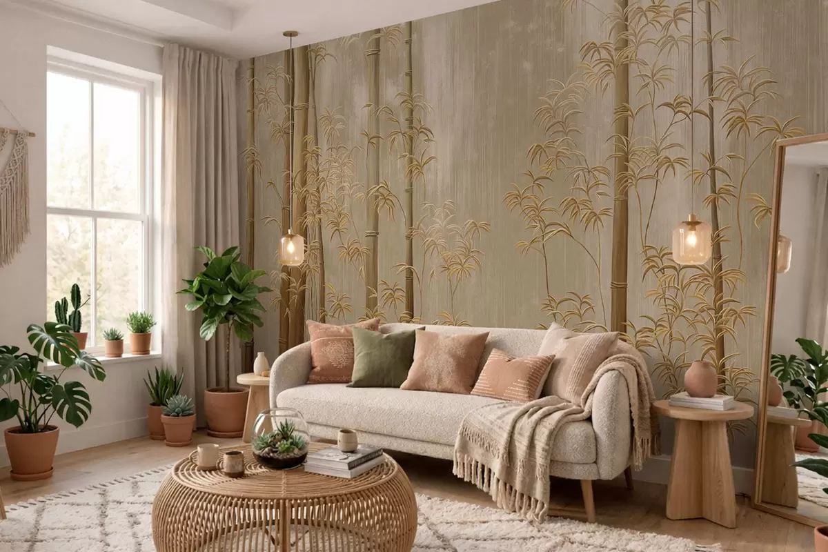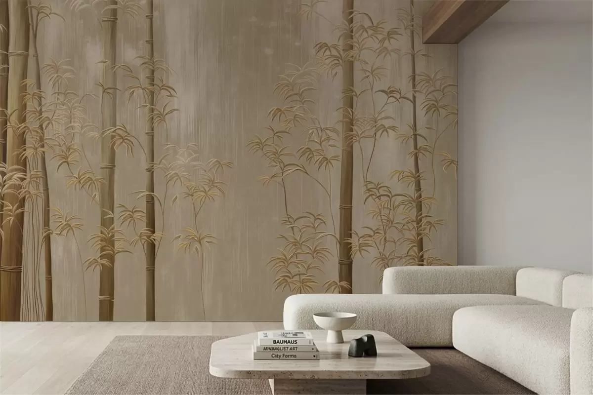 Тапете за зид Беж бамбус са танким стабљикама бр. w05120v2