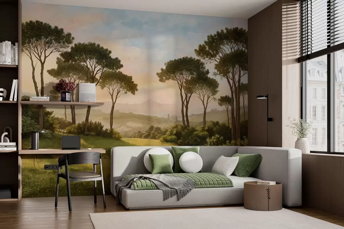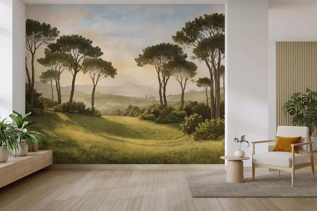 Тапете за зид Пејзаж са дрвећем у топлој светлости заласка сунца бр. w05122