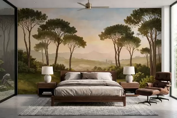 Тапете за зид Пејзаж са дрвећем у топлој светлости заласка сунца бр. w05122