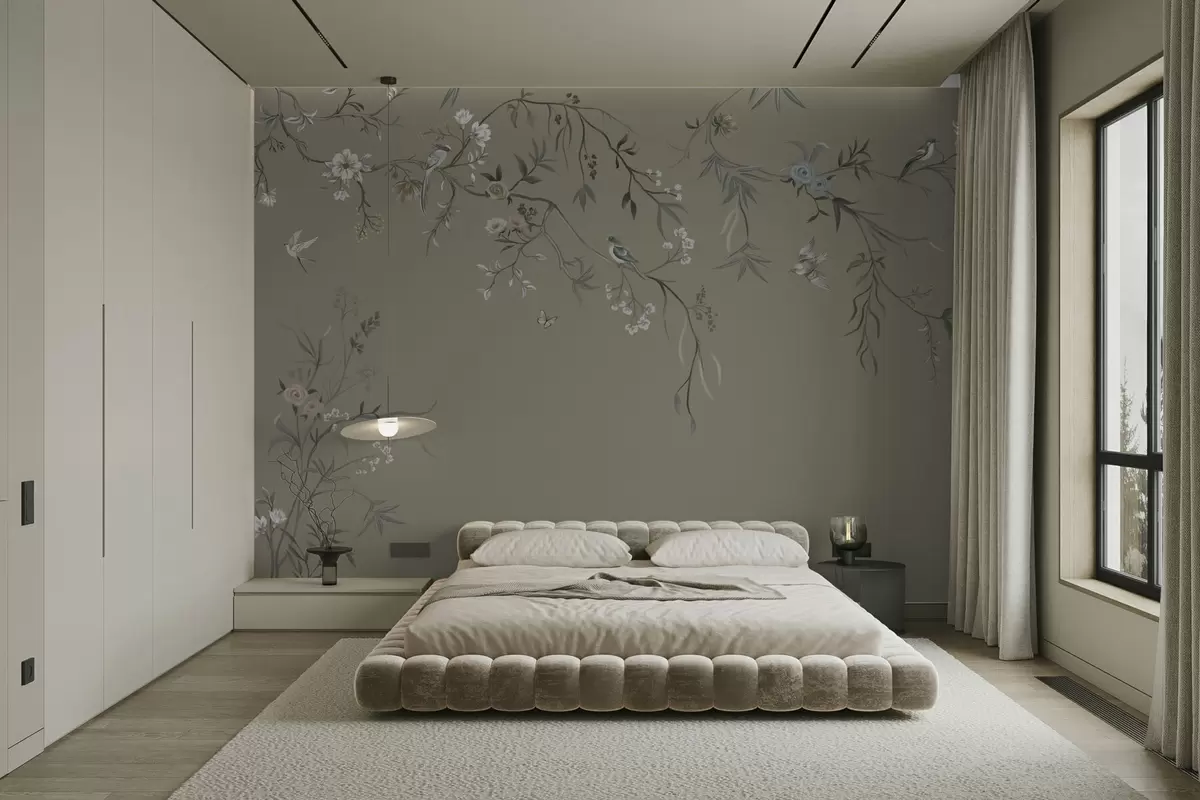 Тапете за зид Цветни мотив са птицама на сивој позадини бр. w05127v4