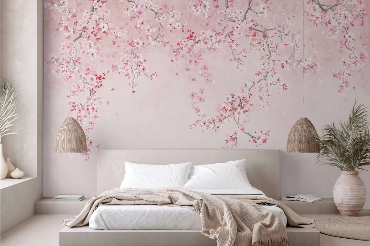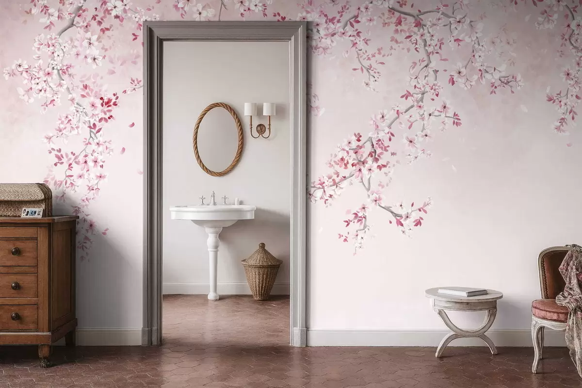 Тапете за зид Гране са ружичастим цветовима на мекој пастелној позадини бр. w05129v1