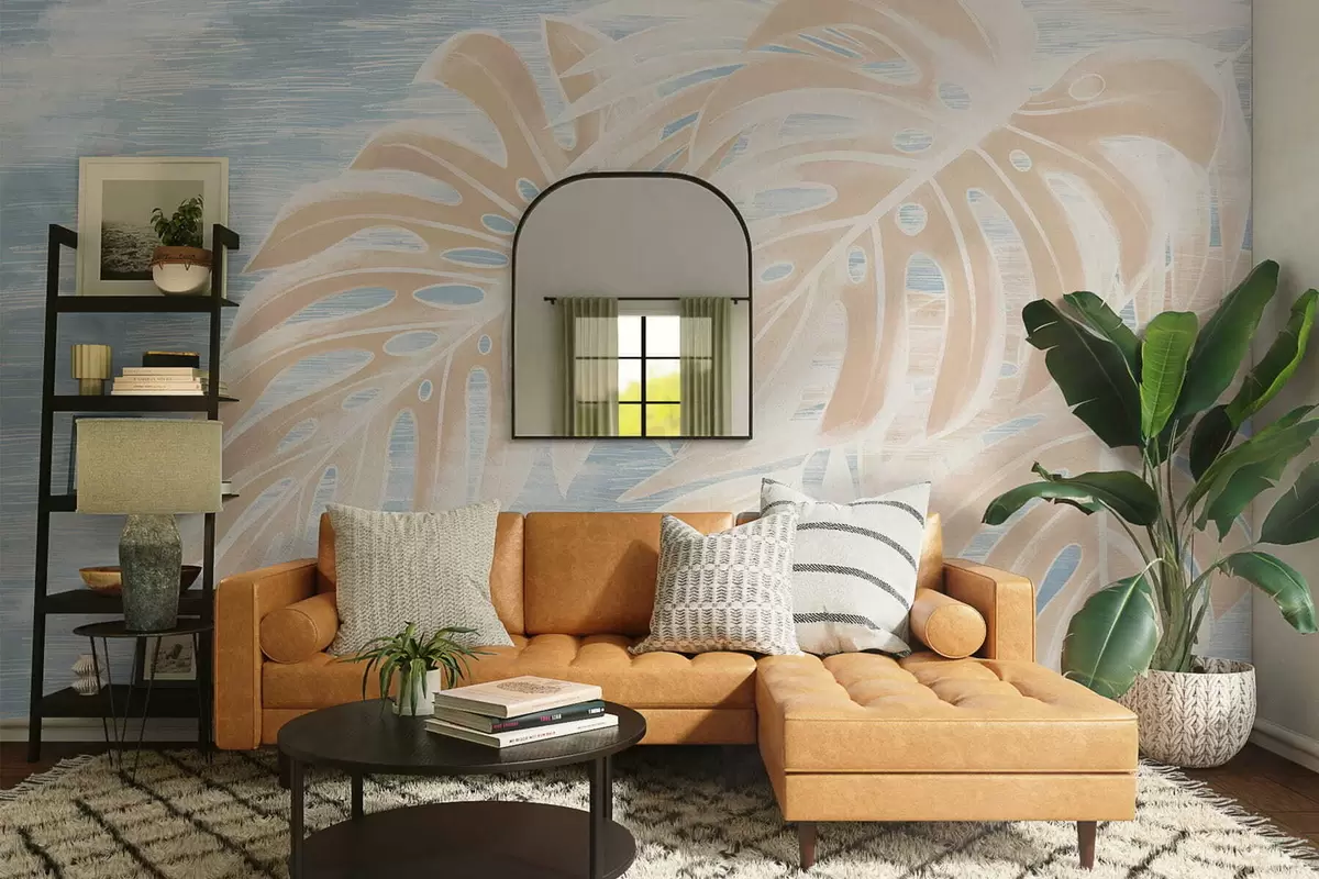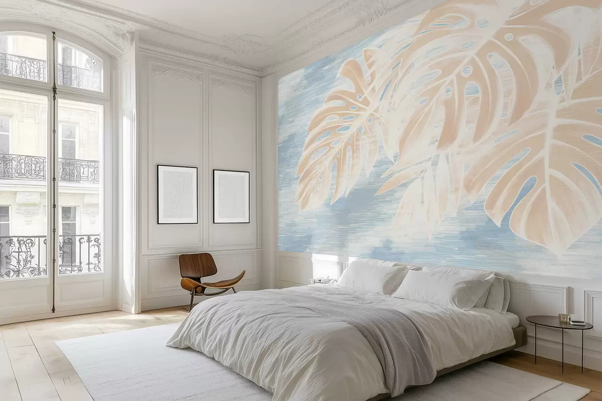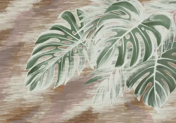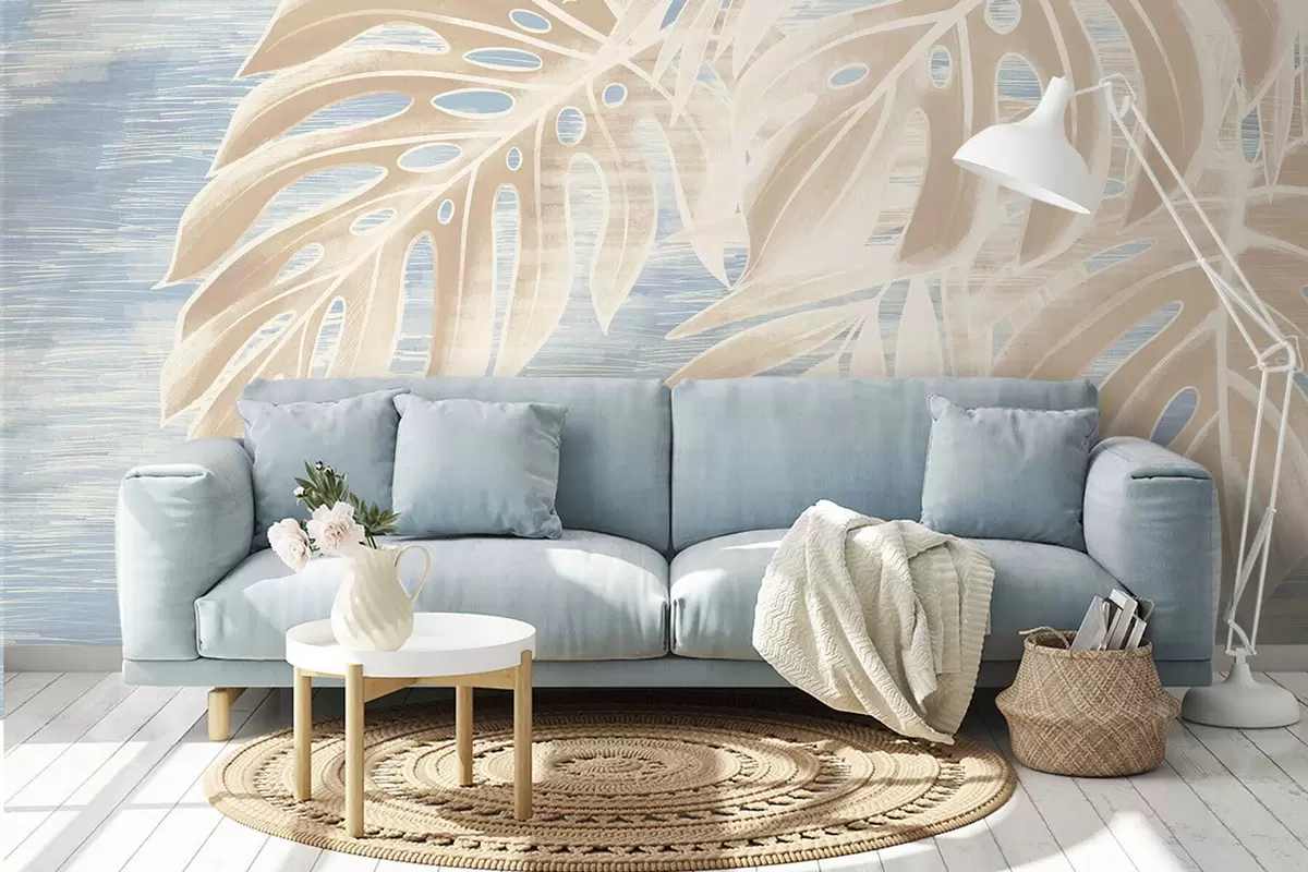 Тапете за зид Апстрактно лишће у топлим беж тоновима на светлој позадини бр. w05130