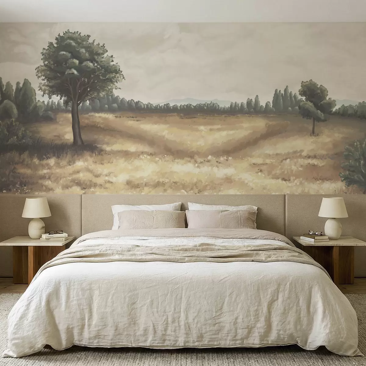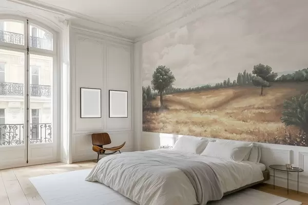 Тапете за зид Осликани пејзаж са дрвећем и отвореним пољем бр. w05131