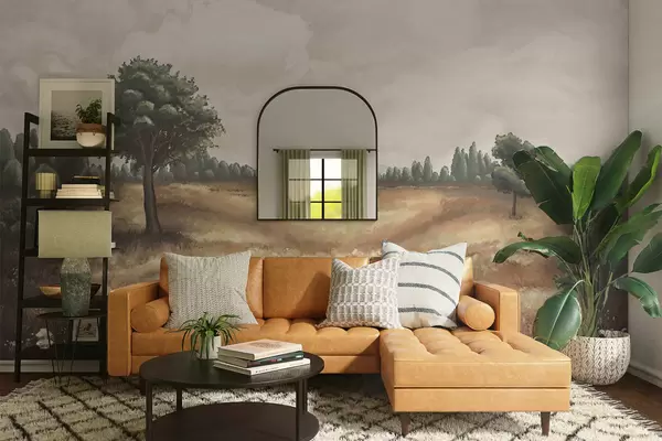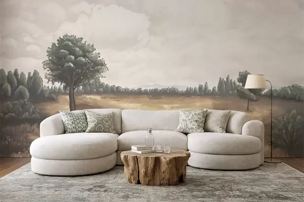 Тапете за зид Осликани пејзаж са дрвећем и отвореним пољем бр. w05131