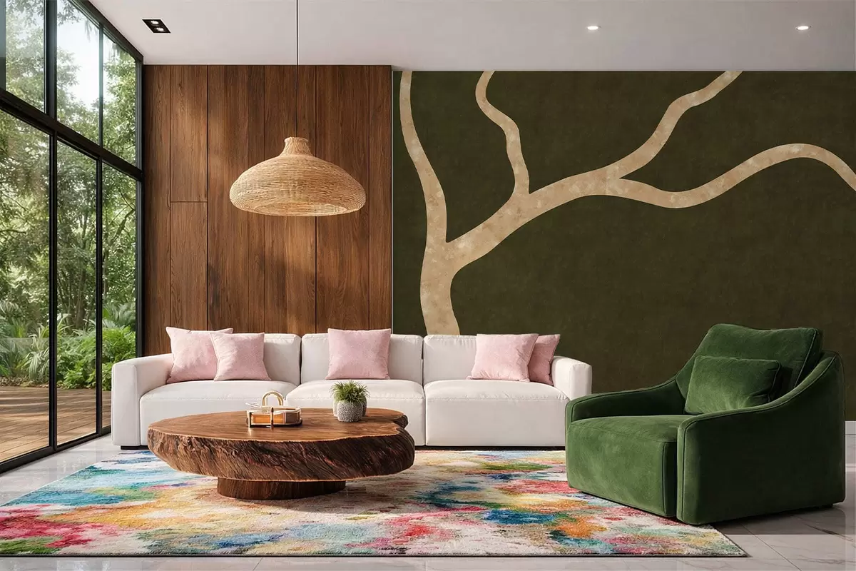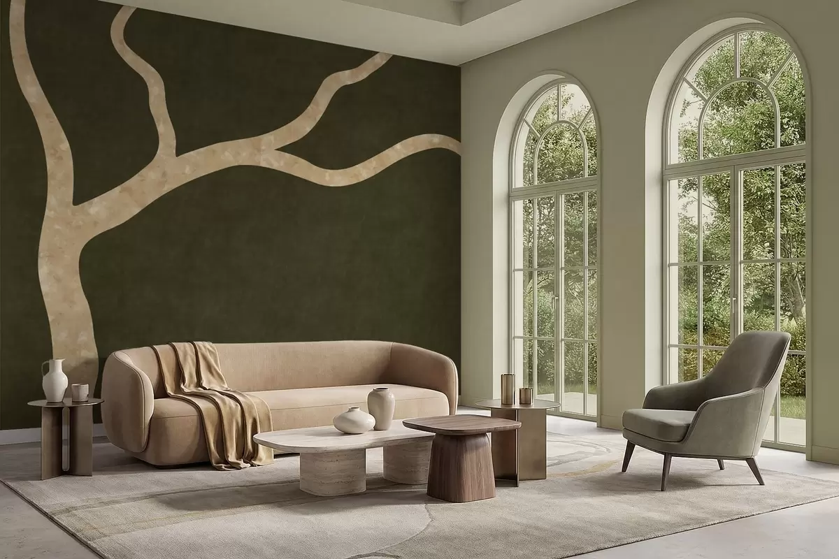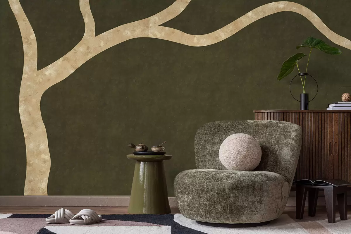 Тапете за зид Светла грана на маслинастој позадини бр. w05144v2