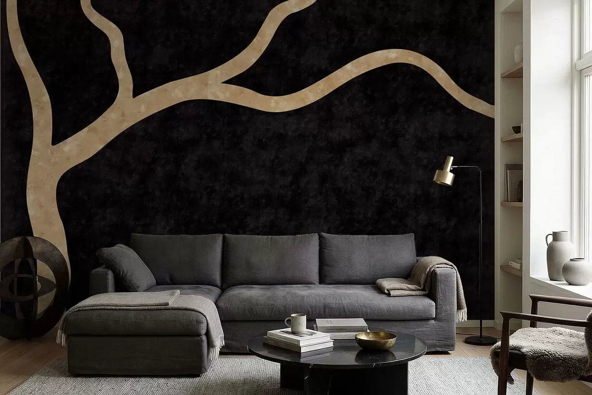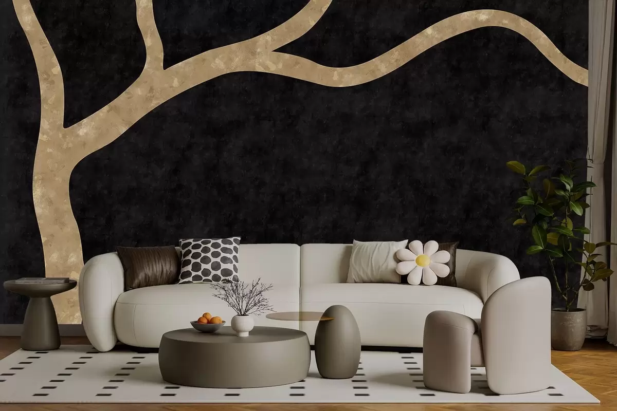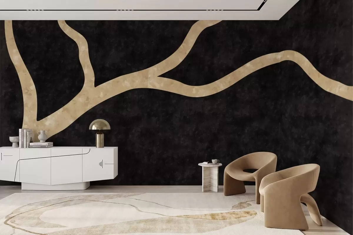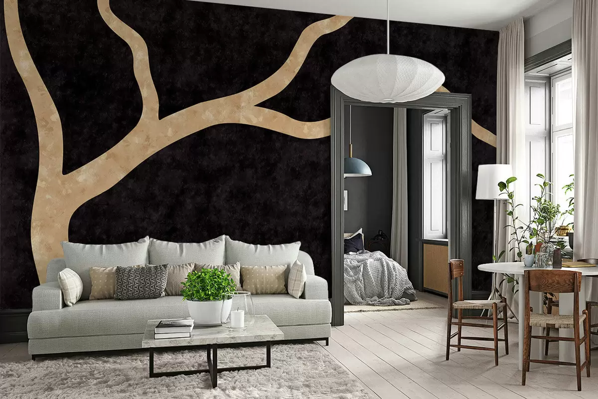Тапете за зид Светла грана на црној позадини бр. w05144v4