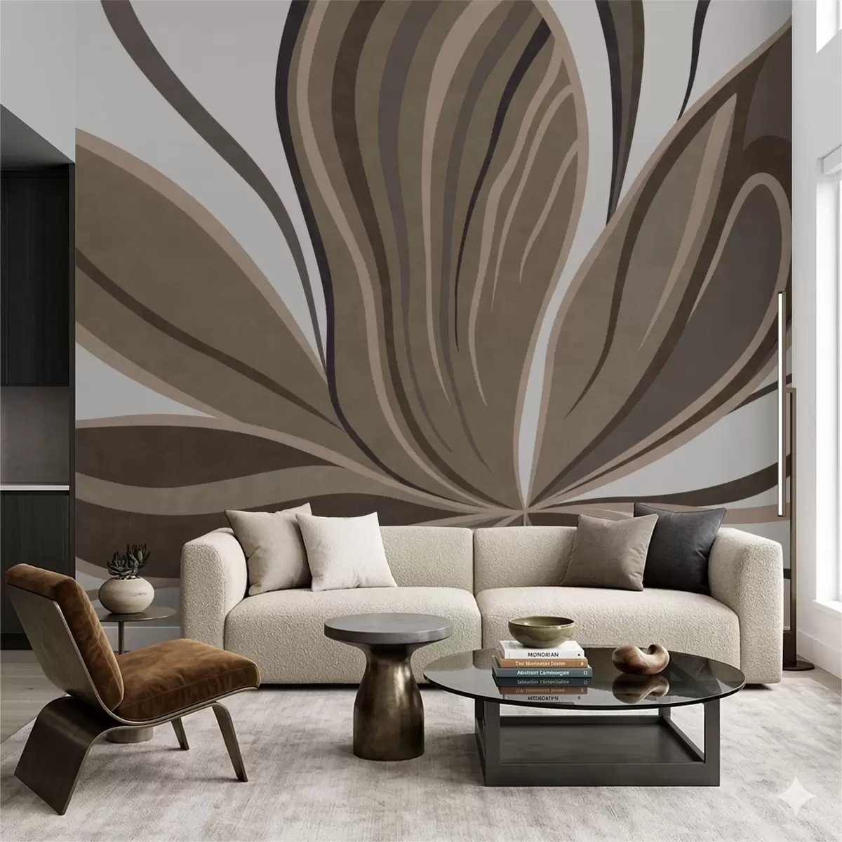 Тапете за зид Стилизовани цвет са течним линијама у смеђим тоновима бр. w05147