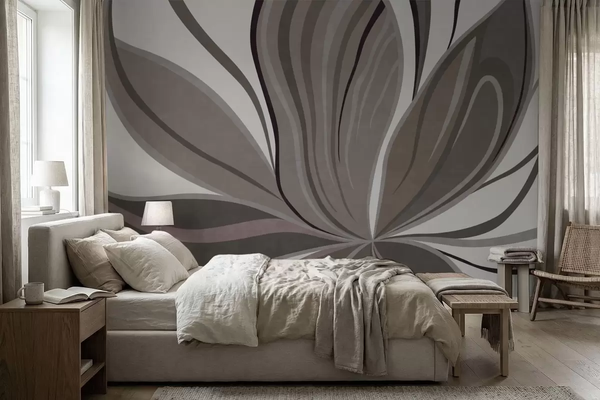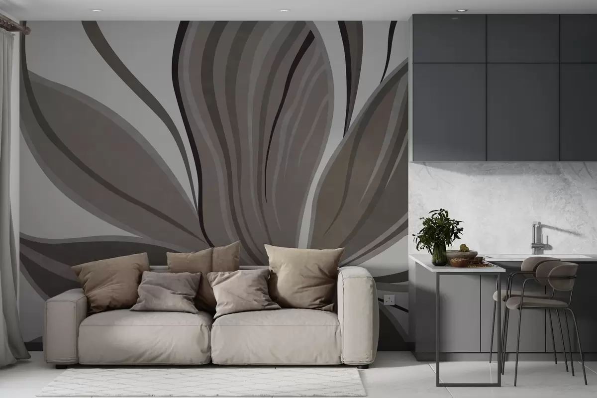 Тапете за зид Апстрактни цвет са меким линијама у сивим беж тоновима бр. w05147v1