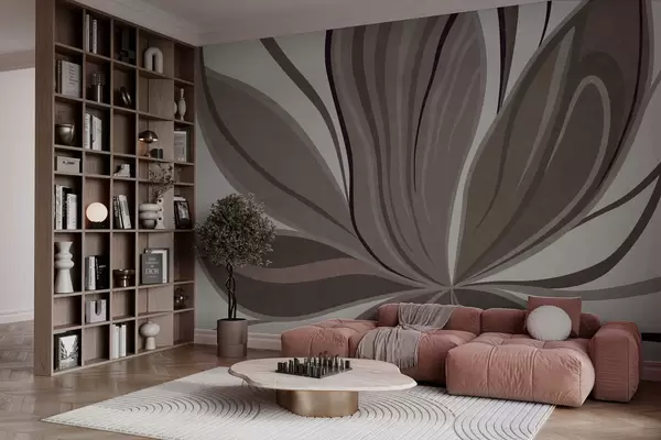 Тапете за зид Апстрактни цвет са меким линијама у сивим беж тоновима бр. w05147v1