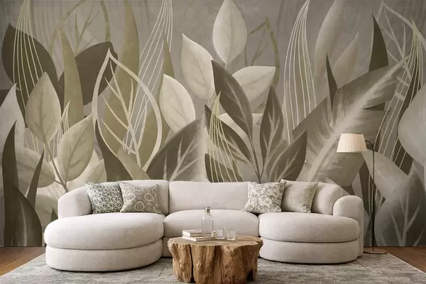 Тапете за зид Апстрактни листови у беж и зеленим тоновима бр. w05148