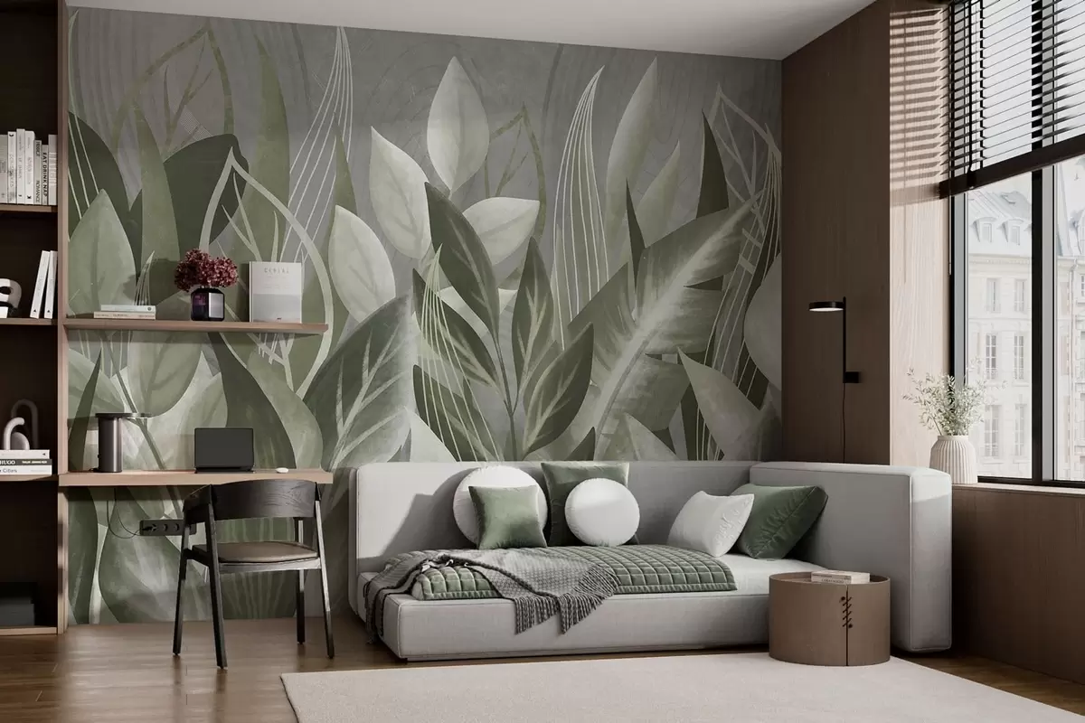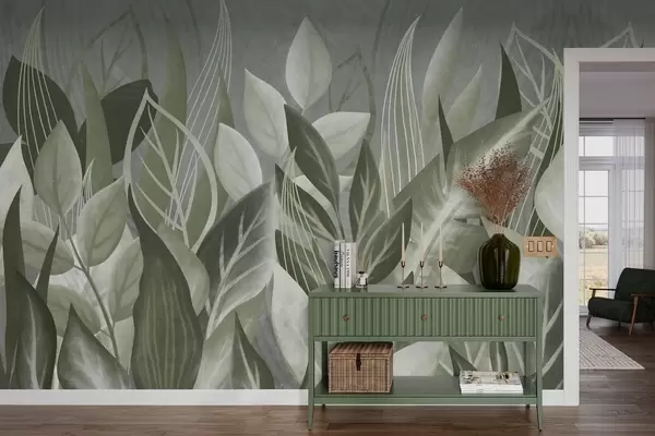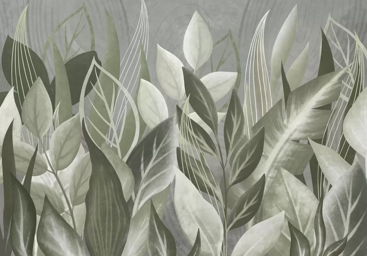 Тапете за зид Апстрактно лишће у сиво-зеленим нијансама бр. w05148v1
