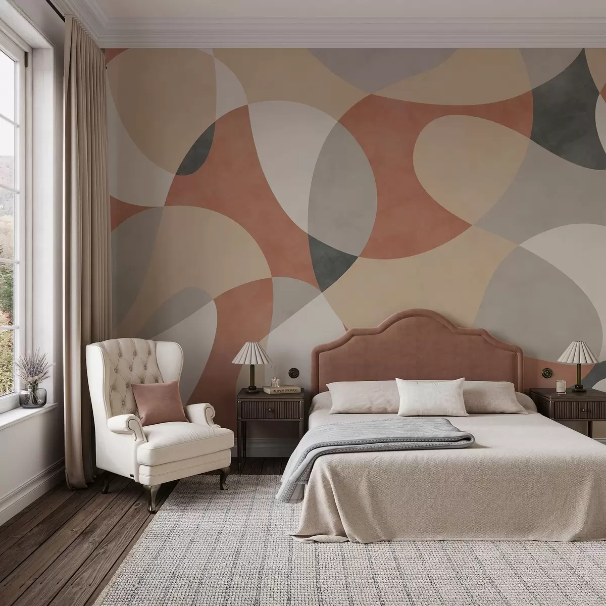 Тапете за зид Апстрактни узорак са заобљеним облицима у топлим тоновима бр. w05149v1