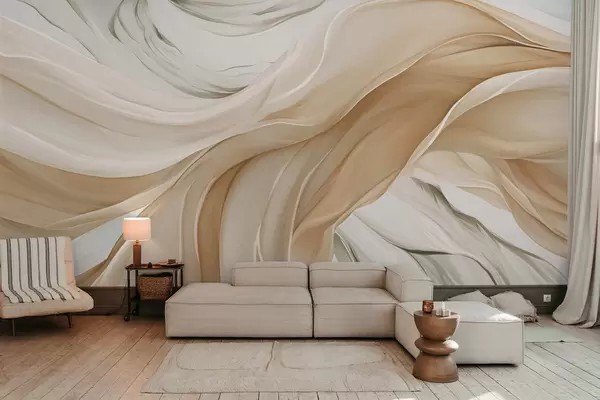 Тапете за зид Таласи од лепршаве беж тканине бр. w05152