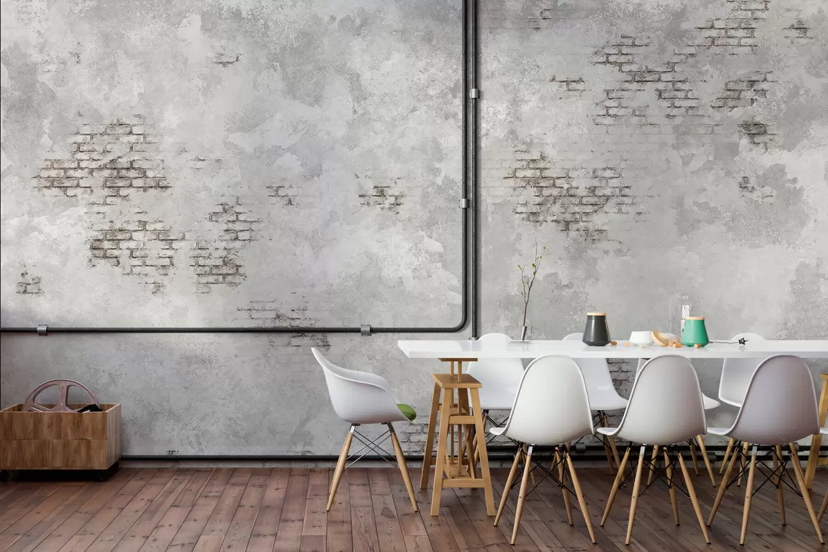 Тапете за зид Грунг текстура малтера са изложеним фрагментима цигле бр. w05161