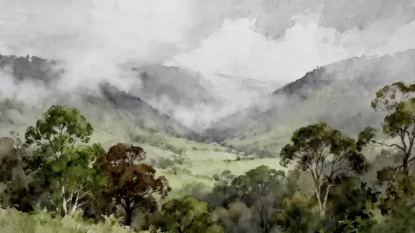 Тапете за зид Насликан пејзаж у магли бр. w05185