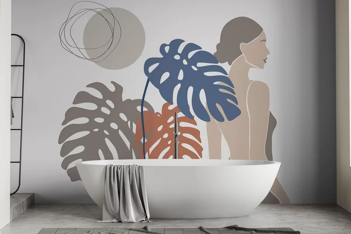 Тапете за зид Силуета жене близу тропског лишћа бр. w05192