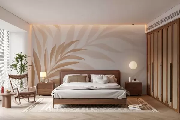 Тапете за зид велики закривљени палмини листови у беж и смеђим тоновима бр. w05211