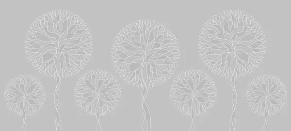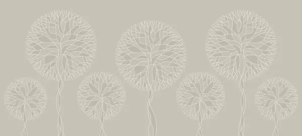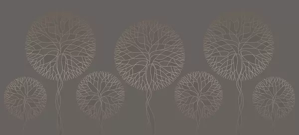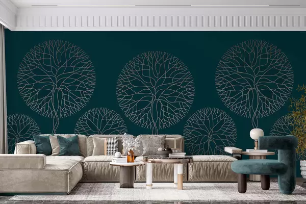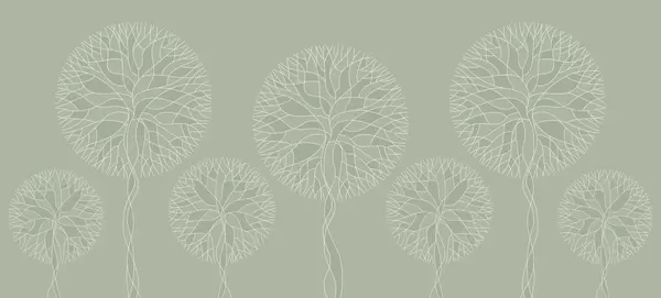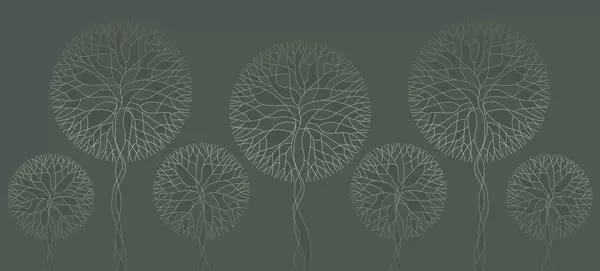 Тапете за зид Фантазијско линеарно дрвеће са бујним крунама у елегантним тамним смарагдним тоновима бр. w05213
