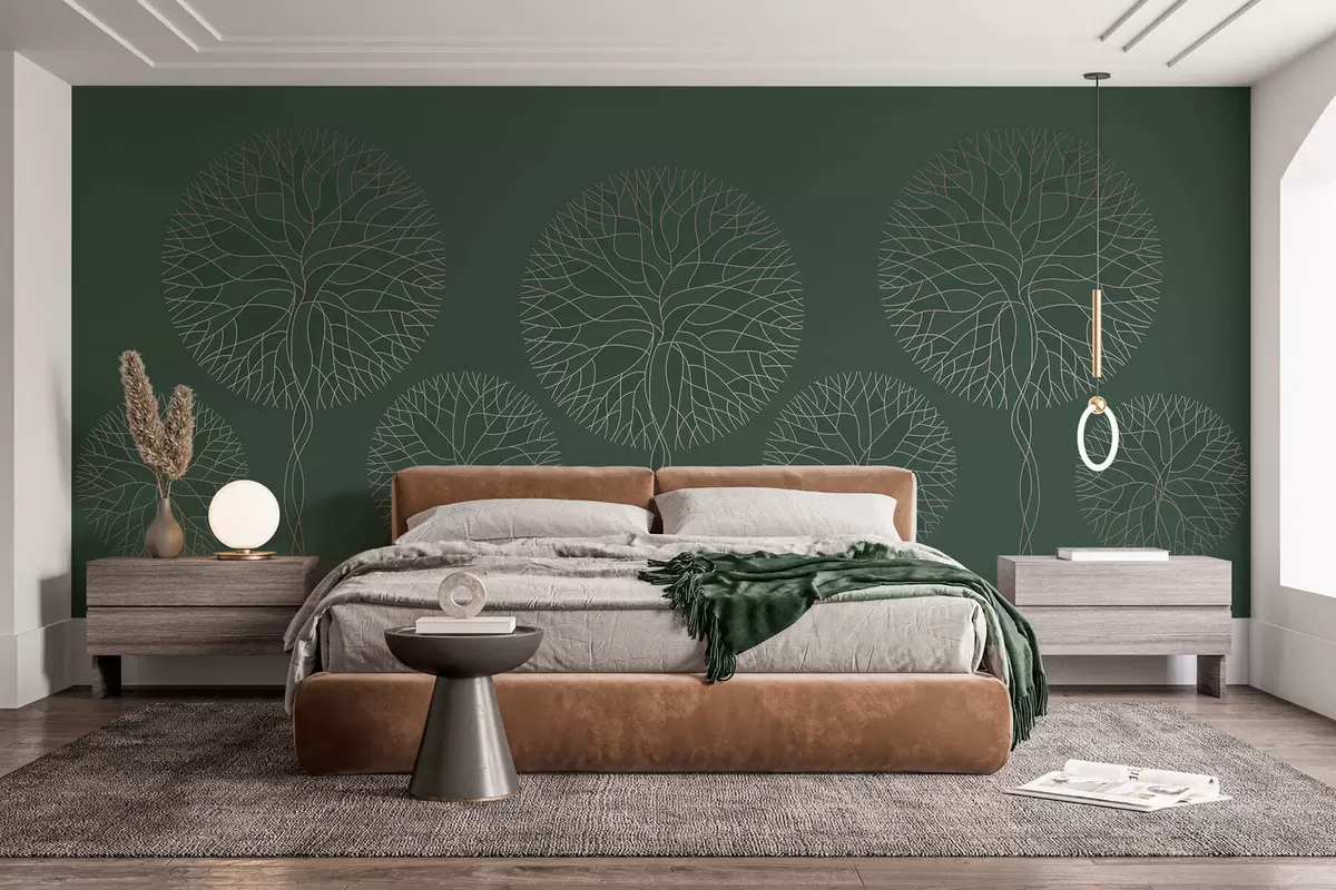 Тапете за зид Фантазијско линеарно дрвеће са бујним крунама у елегантним тамнозеленим тоновима бр. w05213v2