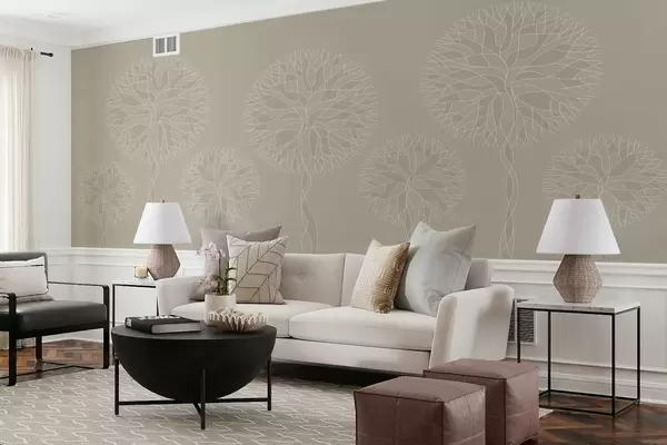 Тапете за зид Фантазијско линеарно дрвеће са бујним крунама у беж тоновима бр. w05213v3