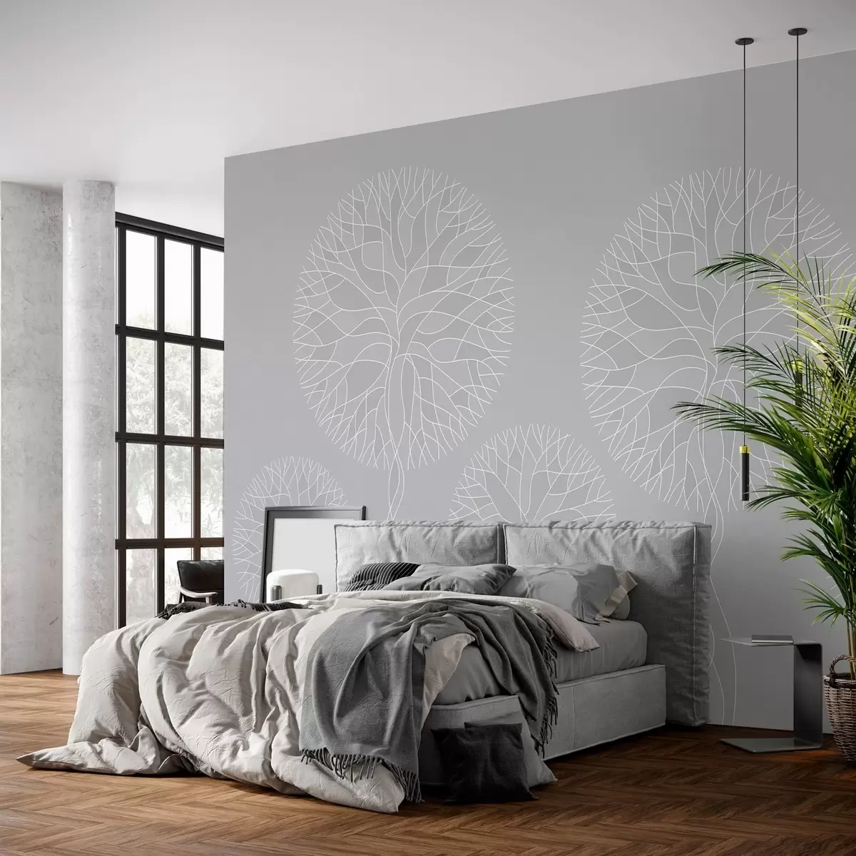 Тапете за зид Фантазијско линеарно дрвеће са бујним крунама у светло сивим тоновима бр. w05213v4