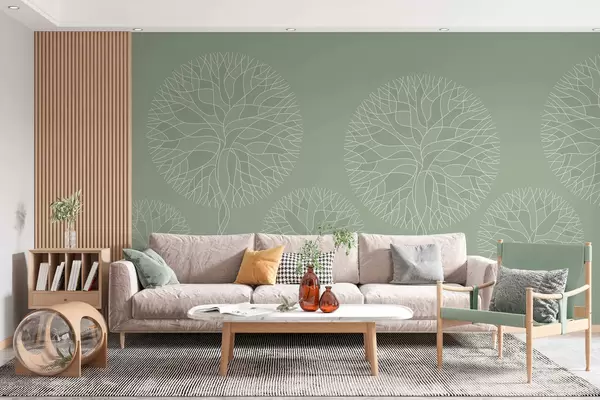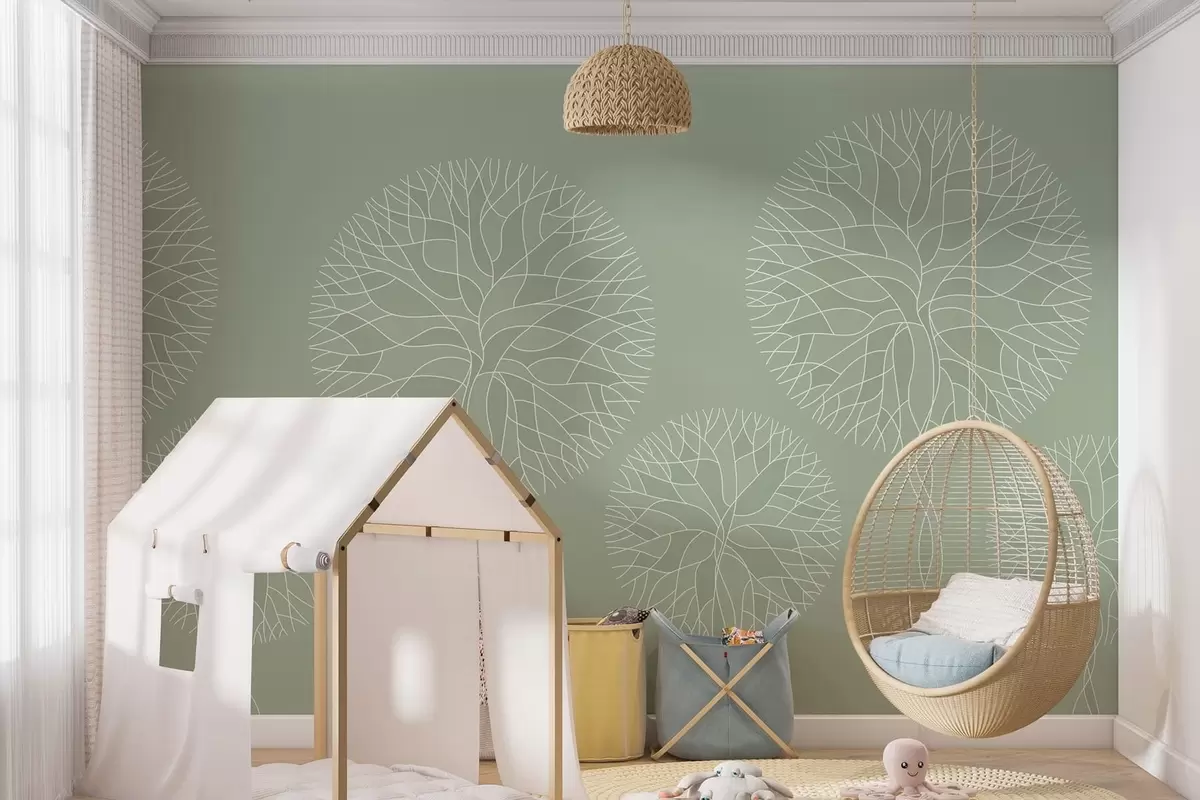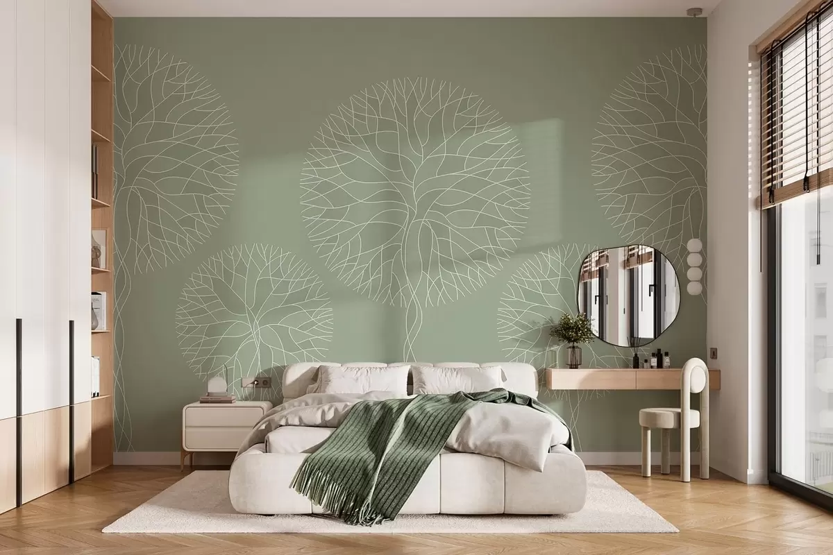 Тапете за зид Фантазијско линеарно дрвеће са бујним крунама у светлозеленим тоновима бр. w05213v6