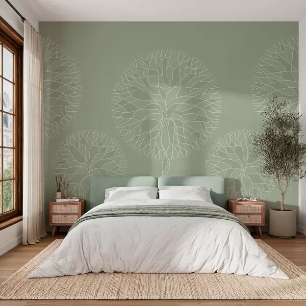 Тапете за зид Фантазијско линеарно дрвеће са бујним крунама у светлозеленим тоновима бр. w05213v6