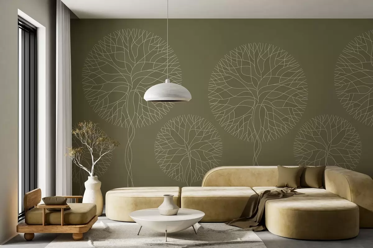 Тапете за зид Фантазијско линеарно дрвеће са бујним крунама у каки тоновима бр. w05213v7