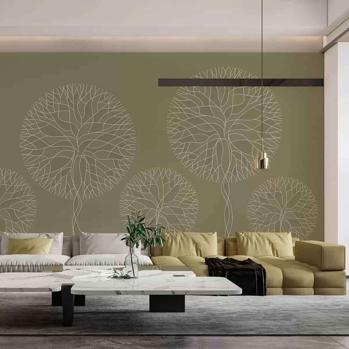 Тапете за зид Фантазијско линеарно дрвеће са бујним крунама у каки тоновима бр. w05213v7