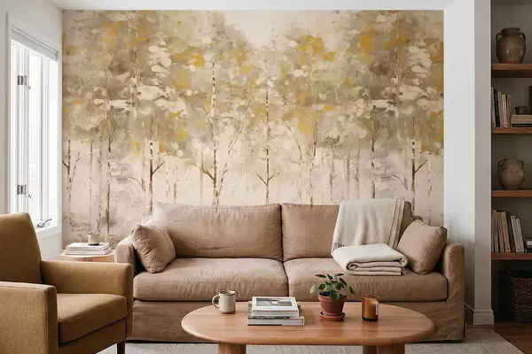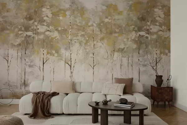 Тапете за зид Стилизована шума са витким дрвећем у топлим тоновима бр. w05221