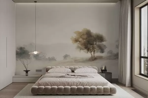 Тапете за зид Минималистички пејзаж са усамљеним дрветом у магли бр. w05223