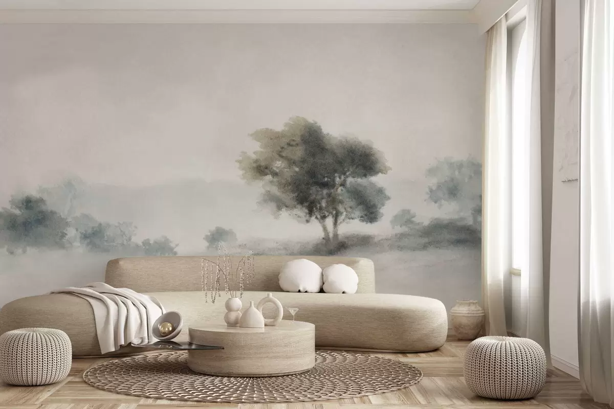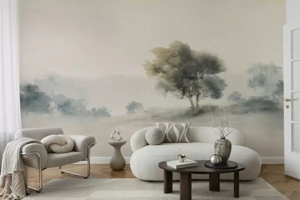 Тапете за зид Мирни пејзаж са дрветом и меким замућеним облицима бр. w05223v1