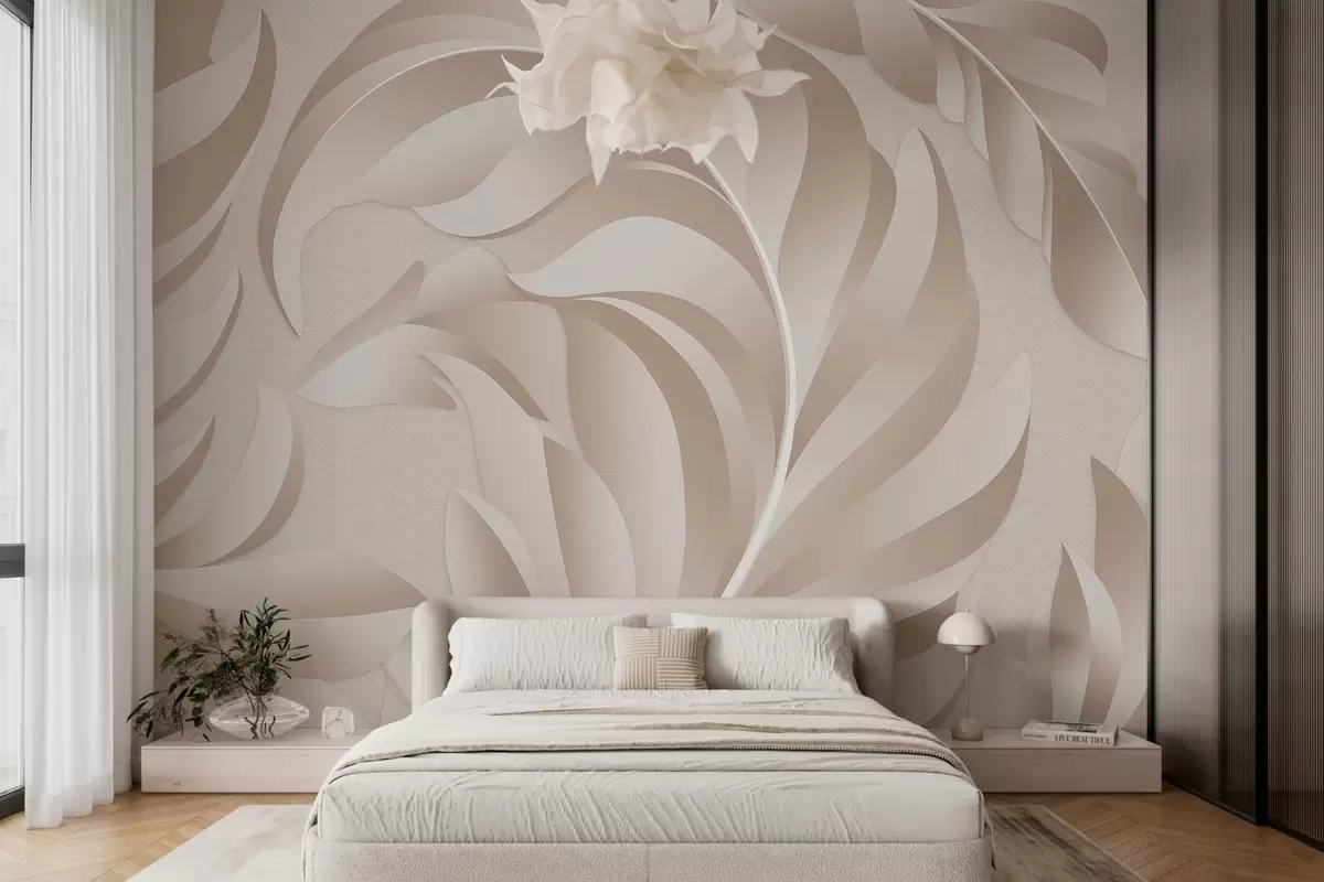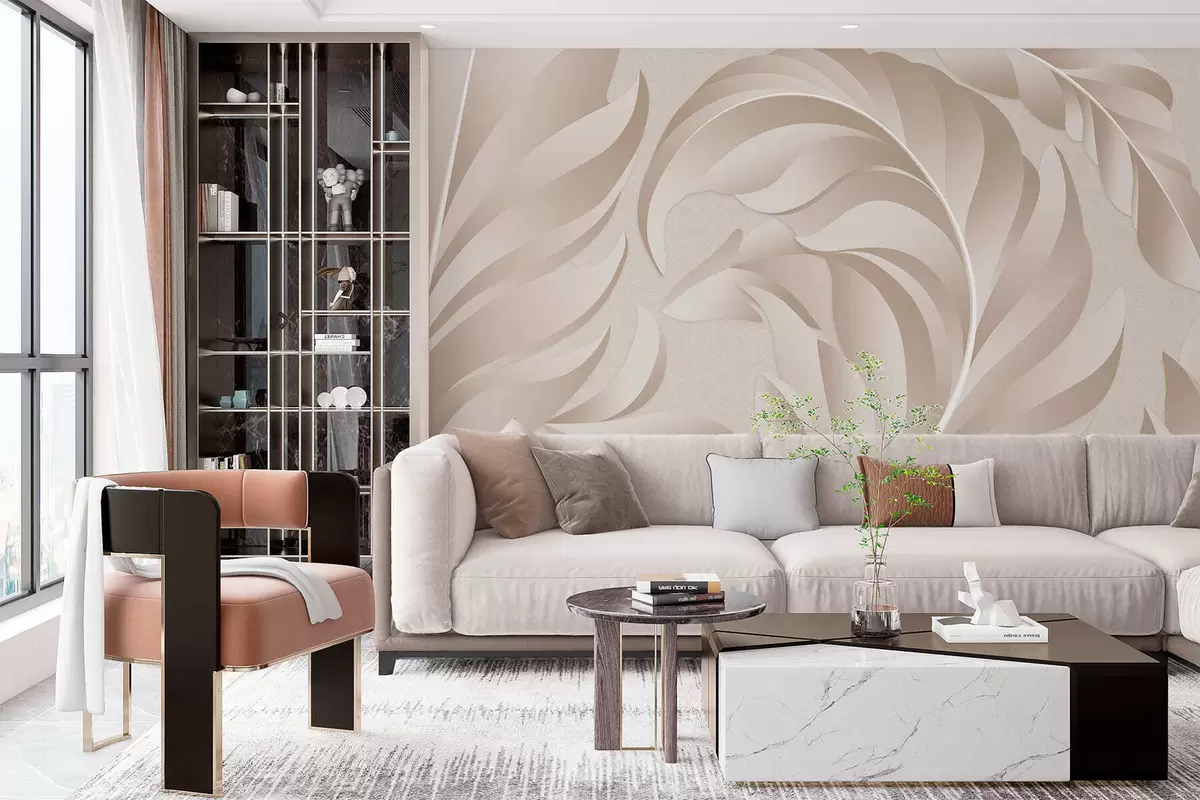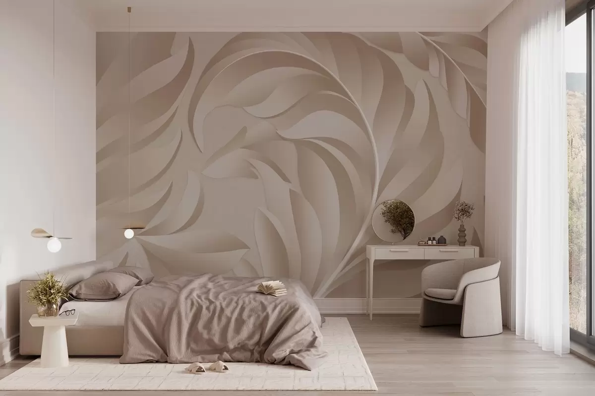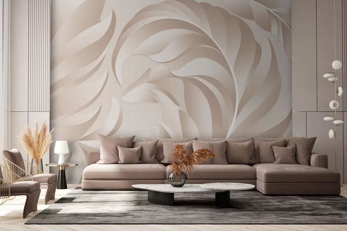Тапете за зид велико текстурирано перје у беж и прашкастим нијансама бр. w05231