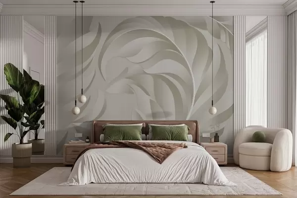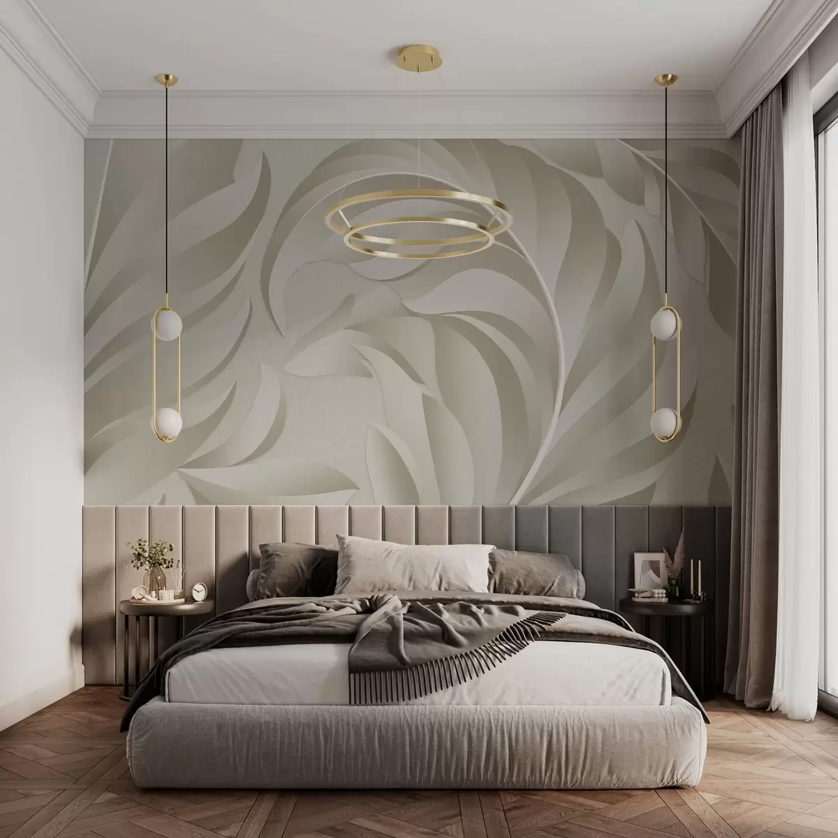 Тапете за зид велико текстурирано перје у беж и маслинастим нијансама бр. w05231v1