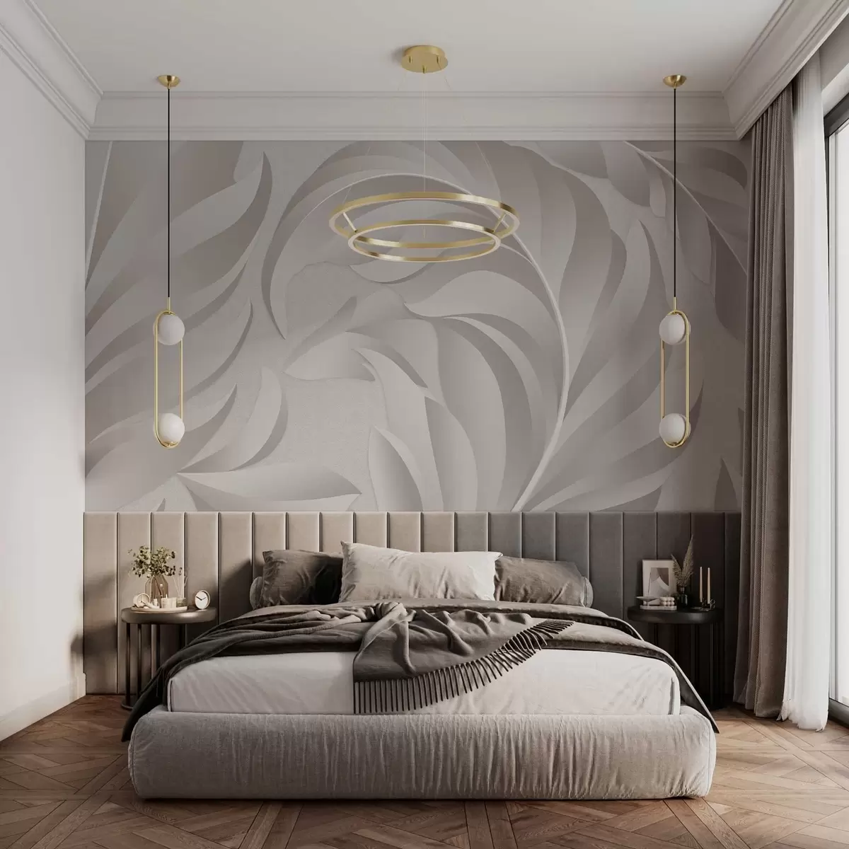 Тапете за зид велико текстурирано перје у седефастим нијансама бр. w05231v2