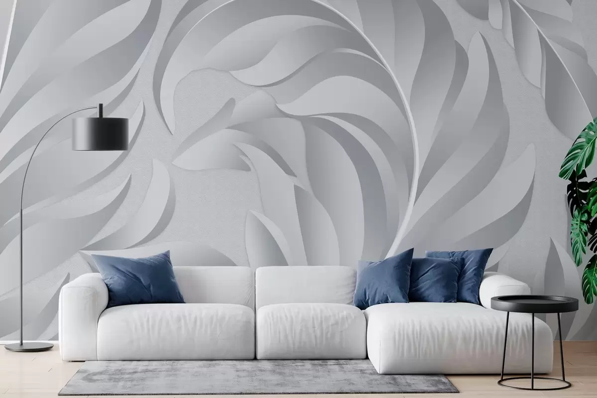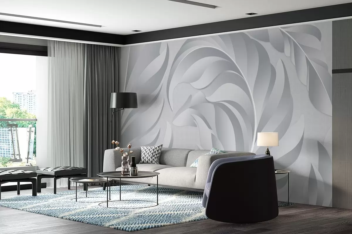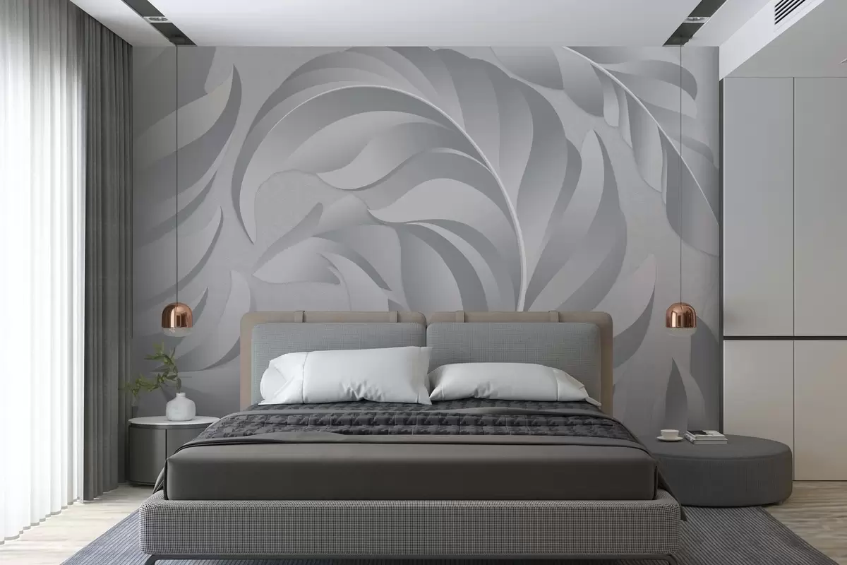 Тапете за зид велико текстурирано перје у нијансама сиве бр. w05231v3