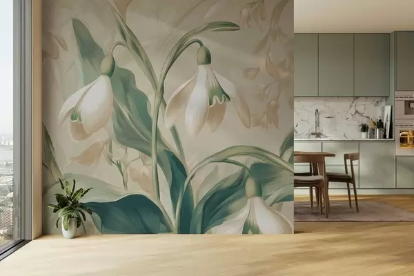 Тапете за зид Цветајуће висибабе на беж позадини бр. w05234