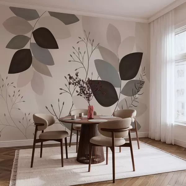 Тапете за зид лишће и траве у нијансама беж, сиве и браон бр. w05237