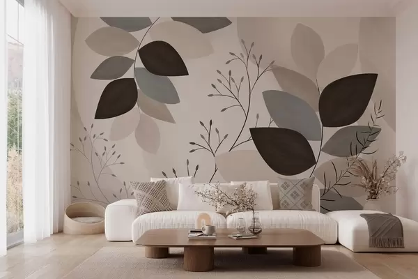 Тапете за зид лишће и траве у нијансама беж, сиве и браон бр. w05237