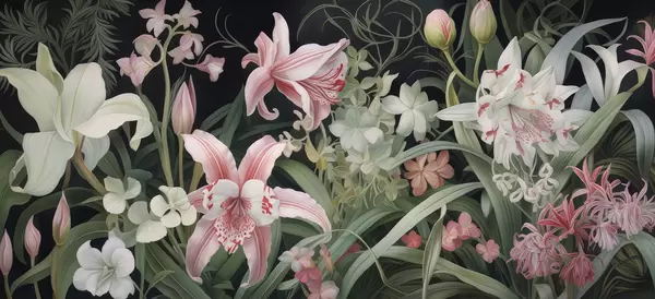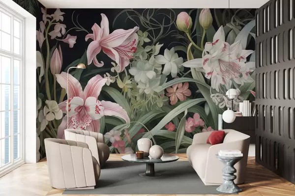 Тапете за зид Фантастично цвеће на тамној позадини бр. w05278