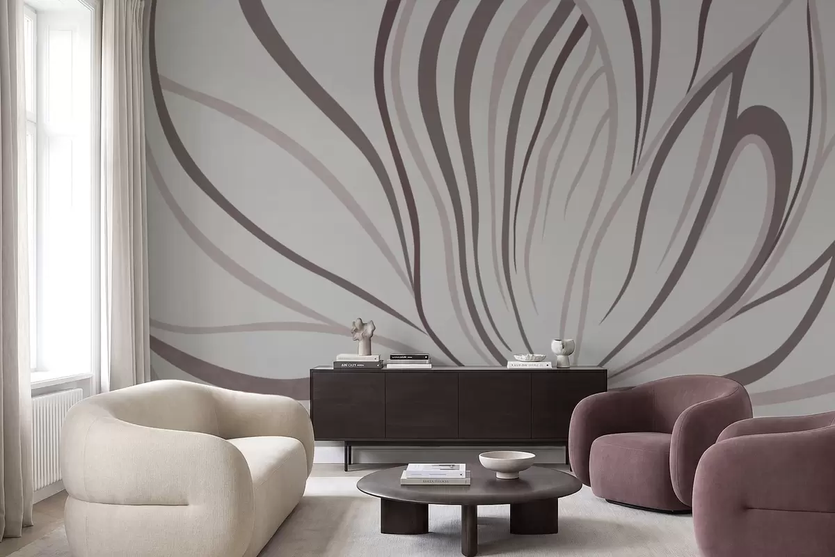 Тапете за зид Стилизовани цвет са меким линијама у ружичасто-беж тоновима бр. w05392v1