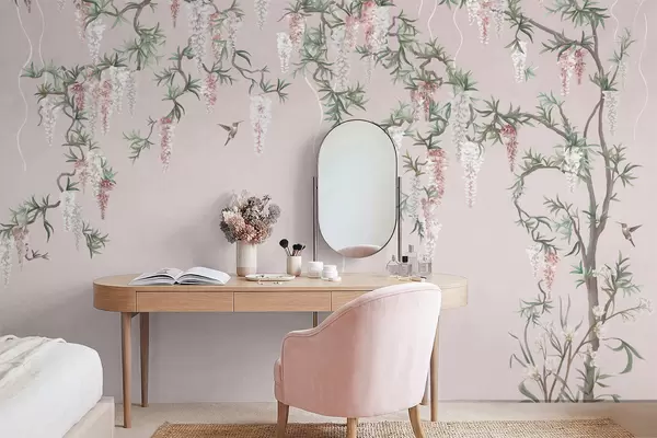 Тапете за зид Цветне гране са ружичастим цветовима и птицама бр. w05394v1